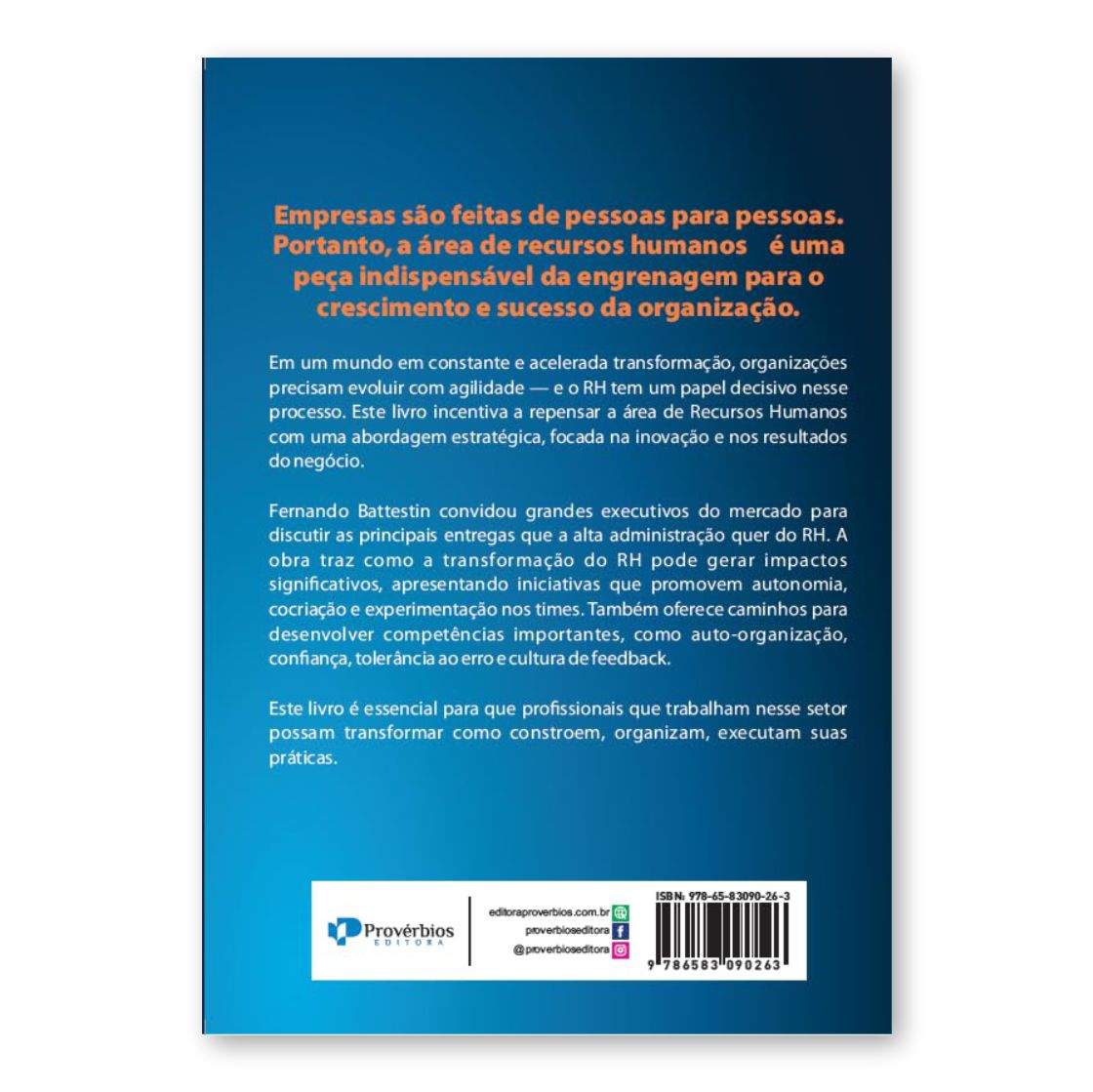 Fernando Battestin convidou grandes executivos do mercado para discutir as principais entregas que a alta administração quer do RH. A obra traz como a transformação do RH pode gerar impactos significativos, apresentando iniciativas que promovem autonomia, cocriação e experimentação nos times. Também oferece caminhos para desenvolver competências importantes, como auto-organização, confiança, tolerância ao erro e cultura de feedback.