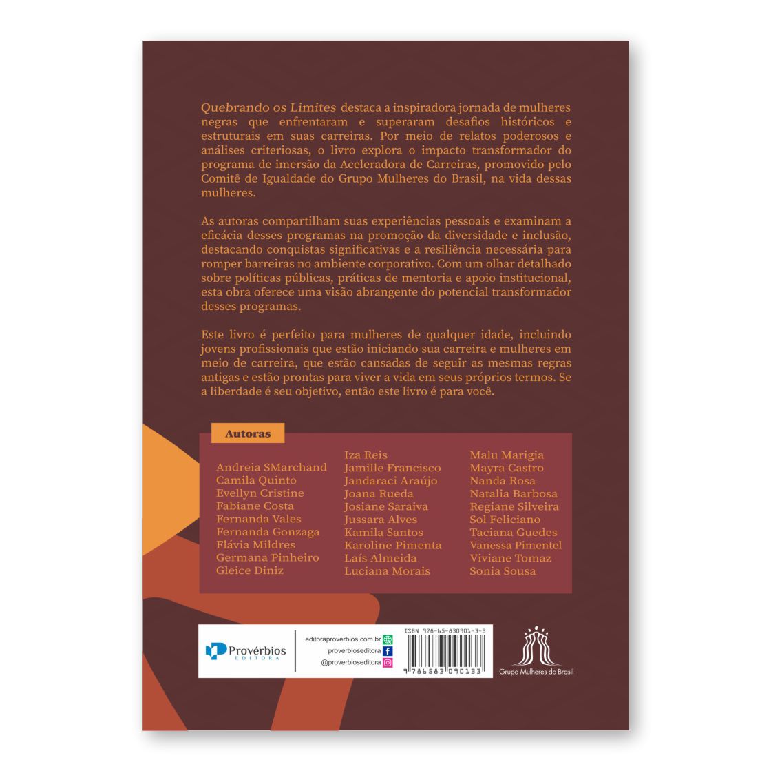 Quebrando os Limites destaca a inspiradora jornada de mulheres negras que enfrentaram e superaram desafios históricos e estruturais em suas carreiras. Por meio de relatos poderosos e análises criteriosas, o livro explora o impacto transformador do programa de imersão da Aceleradora de Carreiras, promovido pelo Comitê de Igualdade do Grupo Mulheres do Brasil, na vida dessas mulheres.